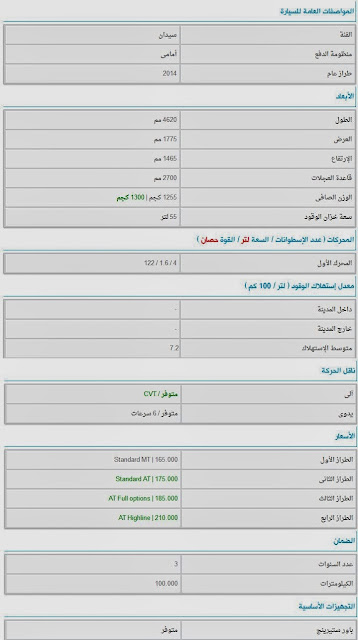 سعر تويوتا كورولا 2014 Toyota Corolla في مصر